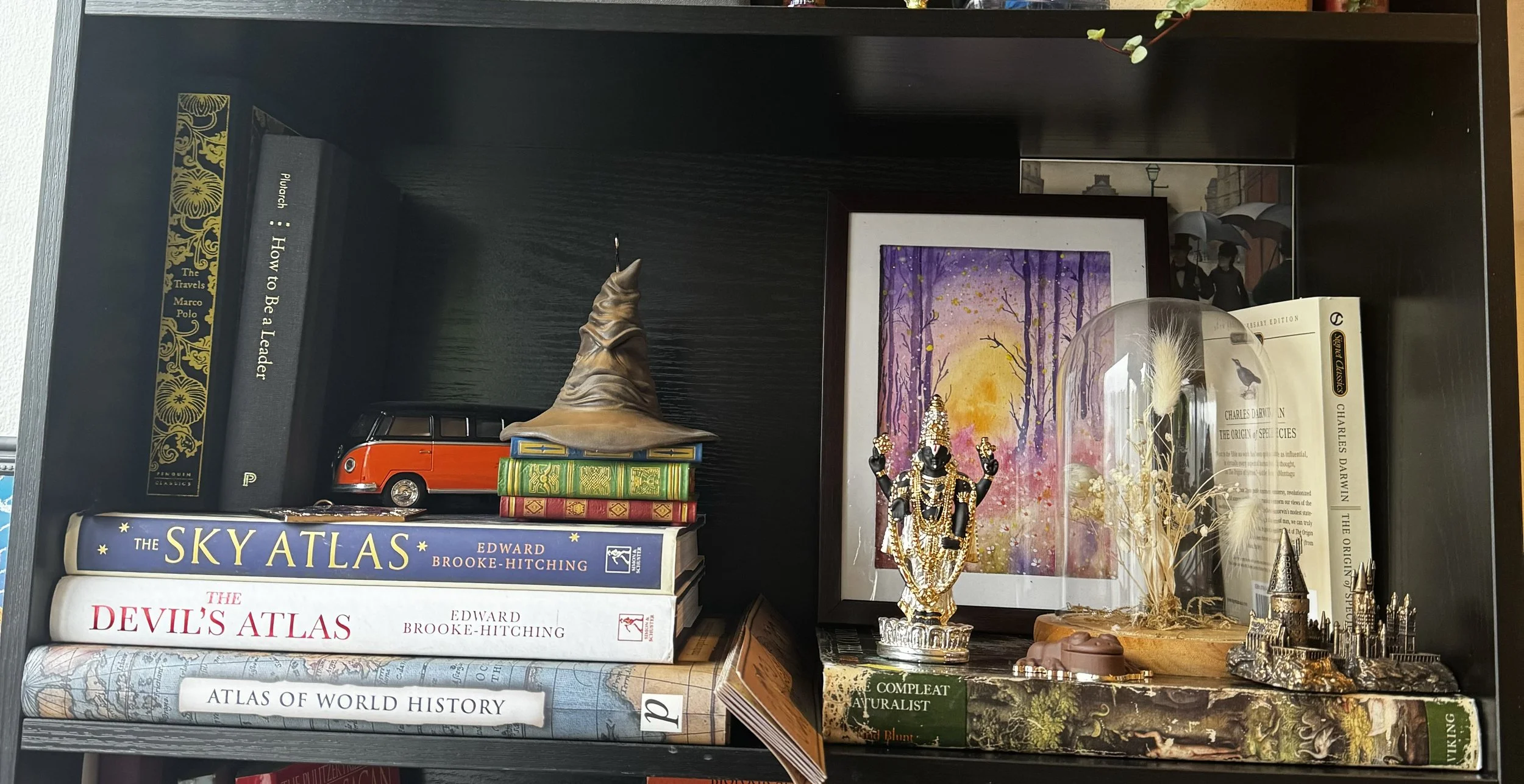 In tandem with my historical explorations, the row expands into the realm of biology, featuring Charles Darwin's groundbreaking "Origin of Species" as a cornerstone. Darwin's seminal work on evolution forms a critical nexus, guiding me through the unfolding story of life's diversity. Accompanying this seminal text are botanical books, offering a closer look at the intricate beauty of plant life. This dynamic shelf is a testament to the ongoing expansion of my intellectual horizons, with plans to introduce more volumes in 2024, enriching my understanding of both the historical tapestry of human societies and the fascinating complexities of the natural world.